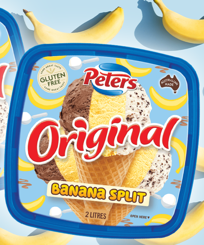 You can now buy a 2L tub of Banana Split ice cream, mixed with chocolate, banana and vanilla with choc flakes.